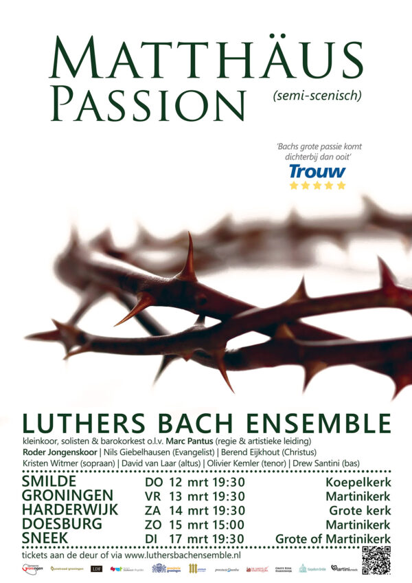In 2026 opnieuw de voor Nederland unieke semi-scenische Matthäus Passion. Door het Dagblad van het Noorden uitgeroepen tot ‘Beste Klassieke Muziekuitvoering 2022’ en in 2023 bekroond met vijf sterren in Dagblad Trouw. In deze semi-scenische Matthäus hebben solisten en koor dagelijkse kleding aan en zingen ze alles uit het hoofd. Het maakt dat de interactie tussen de zangers onderling en met het publiek groter wordt. Gebaren en bewegingen onderstrepen het drama van de passie.