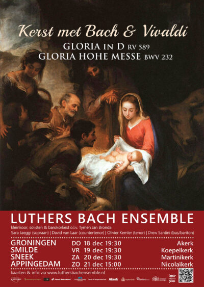 Van Vivaldi klinkt het beroemde en bekende Gloria RV 589. Uit Bachs Hoogmis klinken Kyrie en Gloria. Bachs Hohe Messe is het bekendste koorwerk uit de 18e eeuw en wordt veelal gezien als het ultieme hoogtepunt uit het vocale oeuvre van Johann Sebastian Bach. Naast een 3-ledig Kyrie klinken in verschillende koordelen en aria’s de uitgebreide Gloria tekst.