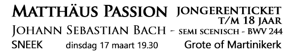 LBE – Matthäus Passion – BWV 244 – Johann Sebastian Bach – semi scenisch – Sneek – Grote of Martinikerk – 17 maart 2026 – aanvang 19:30 uur – jongerenticket – inclusief programmaboekje – zaal open 45 minuten voor aanvang concert